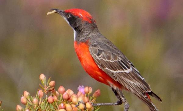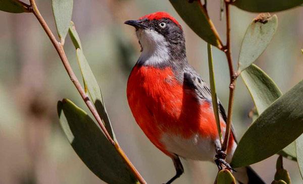 緋紅澳鵖:別名,為雀形目、吸蜜鳥(niǎo)科、澳鵖屬鳥(niǎo)類(lèi),原產(chǎn)于大洋洲,澳大利亞、新西蘭、塔斯馬尼亞及其附近的島嶼。野生于低矮的灌木叢中。1841年命名。