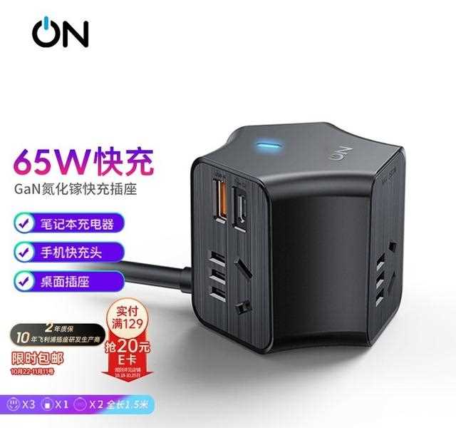 ON摩天輪65W氮化鎵快充插座 雙Type-c/智能USB魔方插座