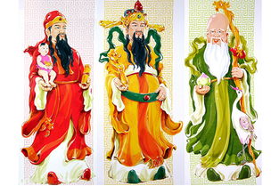 另一說為南極星,在船底座,故壽星亦名南極仙翁 。明清以后民間常將福祿壽三星一并奉祀,三星典型的形象為福星執(zhí)如意居中;右為祿星,作員外打扮,懷抱嬰孩;壽星在左,廣額白須,捧桃執(zhí)杖。