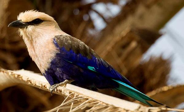 岡比亞國鳥,中等攀禽,與寒鴉體型相仿,喙粗壯而寬,呈錐形,先端微向下彎并有勾。背部呈深綠色,頭部、頸部及胸部都呈白色,其余的羽毛主要是藍色。飛行時最為亮眼。因頭和嘴看似猛禽,有時會遭成群小鳥保護性的圍攻。