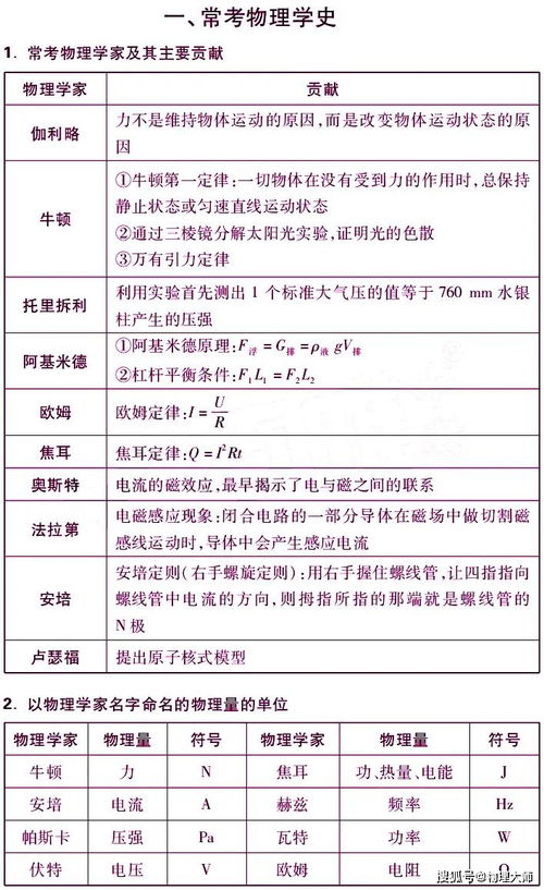4.平衡力的條件:兩個(gè)力大小相等,方向相反,作用在同一直線上。 5.凸透鏡成像規(guī)律:物體在凸透鏡一倍焦距以內(nèi),在同側(cè)成正立放大的虛像;物體在凸透鏡一倍焦距和兩倍焦距之間,成倒立放大的實(shí)像;物體在凸透鏡兩倍焦距以外,成倒立縮小的實(shí)像。