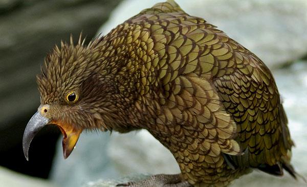 啄羊鸚鵡:別名深山鸚鵡,為鸚形目、鸚鵡科、啄羊鸚鵡屬鳥類,原產(chǎn)于大洋洲澳大利亞、新西蘭、塔斯馬尼亞及其附近島嶼,棲息于海拔600-2000m的山區(qū)森林、高地稀樹(shù)灌從。1856年命名,無(wú)亞種。由于時(shí)常發(fā)出Keeaa的沙啞叫聲而得名。啄羊鸚鵡有著強(qiáng)烈的好奇心,看到任何一樣新東西都要設(shè)法弄個(gè)明白,因此它們便在當(dāng)?shù)氐木用裰辛粝铝藧?ài)找麻煩的不好名聲。