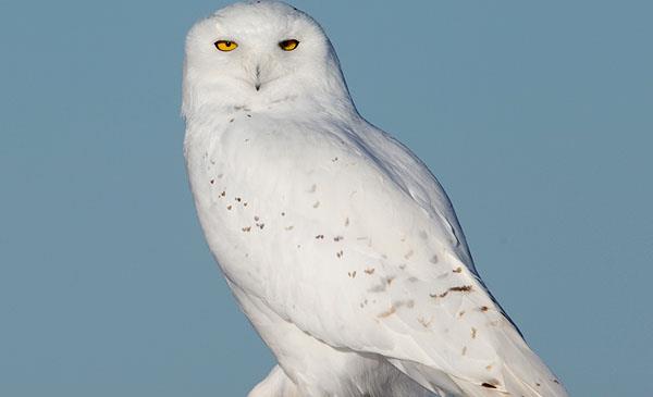 雪鸮:別名雪梟_白鸮_雪鷹_白貓頭鷹,為鸮形目、鴟鸮科、雕鸮屬鳥類,原產(chǎn)于北美洲、亞洲西北部,包括加拿大、美國、芬蘭、格陵蘭、冰島、挪威、俄羅斯、瑞典等國。夏季主要棲息于北極的凍原帶、凍原苔原丘陵、海岸和鄰近荒原與沼澤等,冬季則主要棲于苔原森林、平原、曠野和森林中,特別是開闊的疏林地帶,也曾見于海拔3000米以上的針葉林帶。1758年命名,無亞種。冬候鳥,雌鳥會定居一處并劃分地盤,而且會保衛(wèi)領(lǐng)地,阻止外來者入侵,直到春天它們才會離開此地向北遷徙。