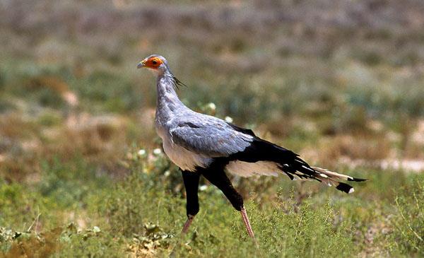 蛇鷲:別名鷺鷹_蜿鷲_秘書鳥_行軍鷹_食蛇鷲_書記鳥_射手鳥,為隼形目、蛇鷲科、蛇鷲屬鳥類,原產于非洲撒哈拉以南的大部分地區(qū),包括塞內加爾、索馬里到南非好望角一帶。棲息于海拔3000m以下的熱帶開闊的大草原和稀樹草原,也生活于半沙漠地區(qū)或者林地中長滿草的開放空地。通常選擇草高度低于一米的地區(qū),也生活在農田地區(qū)。1779年命名,無亞種。