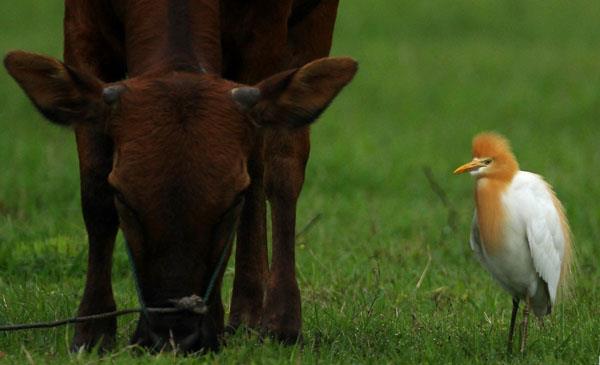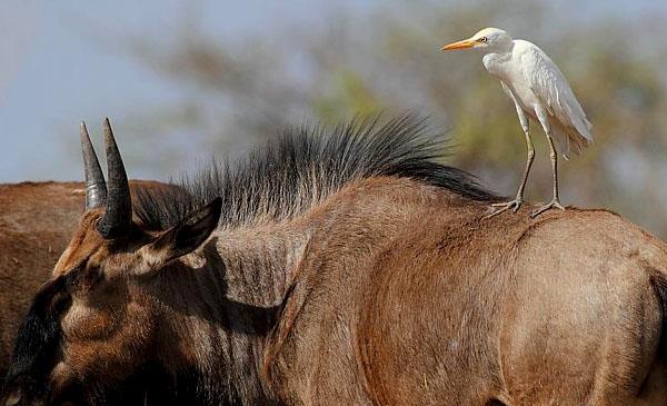 博茨瓦納國(guó)鳥(niǎo),唯一不食魚(yú)而以昆蟲(chóng)為主食的鷺類。常棲息于牛背,捕食牛背上的寄生蟲(chóng),或被驚擾飛的昆蟲(chóng)。牛背鷺得到了豐富的食物來(lái)源,而水牛則減少了蚊蟲(chóng)騷擾,這種互利共生的情況非常有趣。