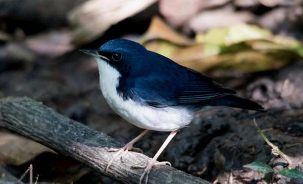 頭體長11-15cm,重約15g。嘴深黑,腳和趾肉黃色。主食昆蟲。雄鳥上體青石藍(lán)色,寬寬的黑色過眼紋延至頸側(cè)和胸側(cè),下體白。雌鳥上體橄欖褐,喉及胸褐色并具皮黃色鱗狀斑紋,腰及尾上覆羽沾藍(lán)。亞成鳥及部分雌鳥的尾及腰具些許藍(lán)色。虹膜褐色、嘴黑色、腳粉白色。