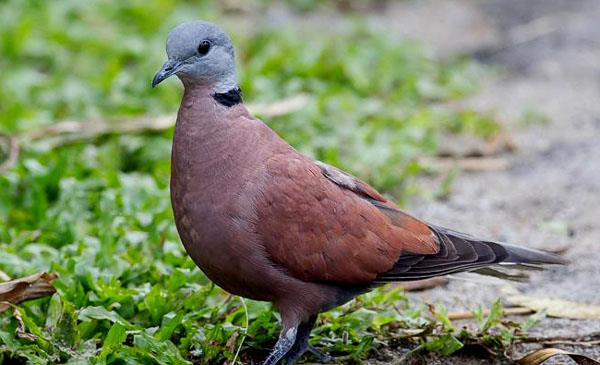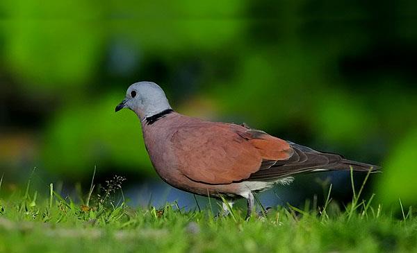 鳩鴿科形較小的品種,也是斑鳩屬中動作較為敏捷的品種。飛行甚快,常發(fā)出“呼呼”的振翅聲。雄鳥頭部至后頸呈藍灰色,頸后有一條黑色領環(huán),延伸至頸兩側。