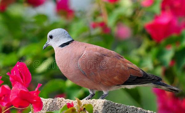 火斑鳩:別名火雀_紅鳩_斑甲_紅斑鳩_紅咖追_火鴣鷦,為鴿形目、鳩鴿科、斑鳩屬鳥類,原產于亞洲南部熱帶地區(qū),包括印度、尼泊爾、不丹、孟加拉國、緬甸、中南半島、泰國、斯里蘭卡和菲律賓等地。棲息于開闊的平原、田野、村莊、果園和山麓疏林及宅旁竹林地帶,也出現(xiàn)于低山丘陵和林緣地帶,成群覓食。中國自華北以南、西抵四川、西藏、長江以北也有分布。模式產地在印度。1804年命名,共2個亞種。