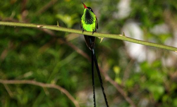 紅嘴長尾蜂鳥:別名醫(yī)生鳥,為雨燕目、蜂鳥科、紅嘴長尾蜂鳥屬鳥類,原產(chǎn)于南美洲與北美洲之間的中美洲地區(qū),包括危地馬拉、伯里茲、洪都拉斯、薩爾瓦多、尼加拉瓜、哥斯達(dá)黎加、巴拿馬、巴哈馬、古巴、海地、牙買加、多米尼加、等國家和地區(qū)。
