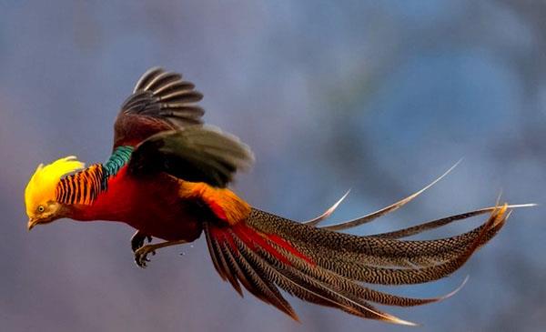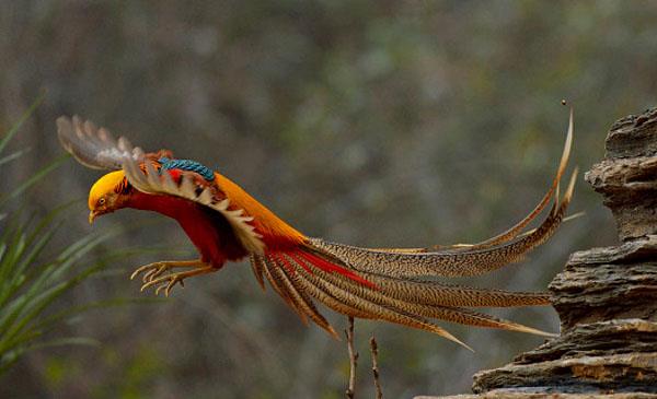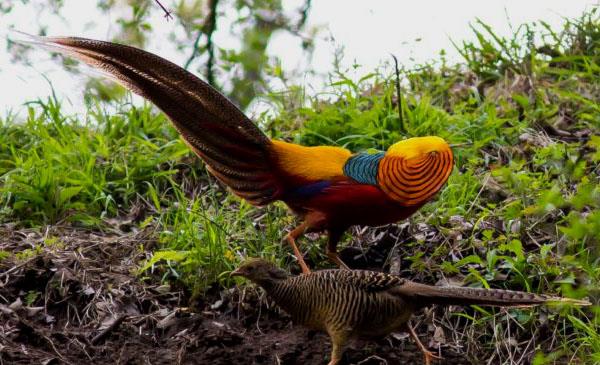 雄鳥鮮艷華麗,尾羽極長,被評為世界上最美麗的鳥類,因頭部金黃色冠羽而又名金雞,是我國鳳凰的化身。野外特征極為明顯,全身羽毛顏色交相輝映,赤橙黃綠青藍紫具全,光彩奪目,是馳名中外的觀賞鳥類,也是中國備選國鳥。