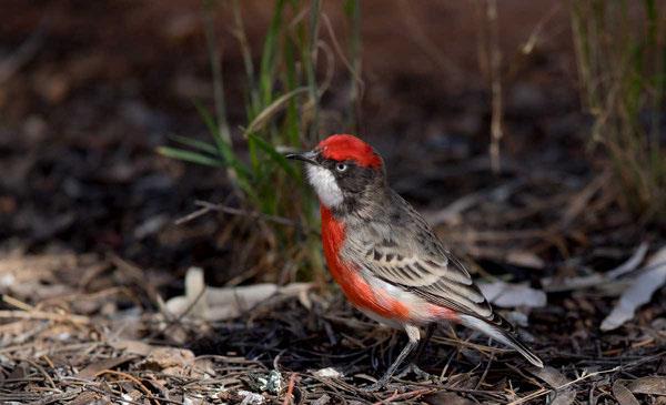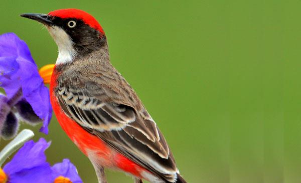 緋紅澳鵖:別名,為雀形目、吸蜜鳥(niǎo)科、澳鵖屬鳥(niǎo)類(lèi),原產(chǎn)于大洋洲,澳大利亞、新西蘭、塔斯馬尼亞及其附近的島嶼。野生于低矮的灌木叢中。1841年命名。