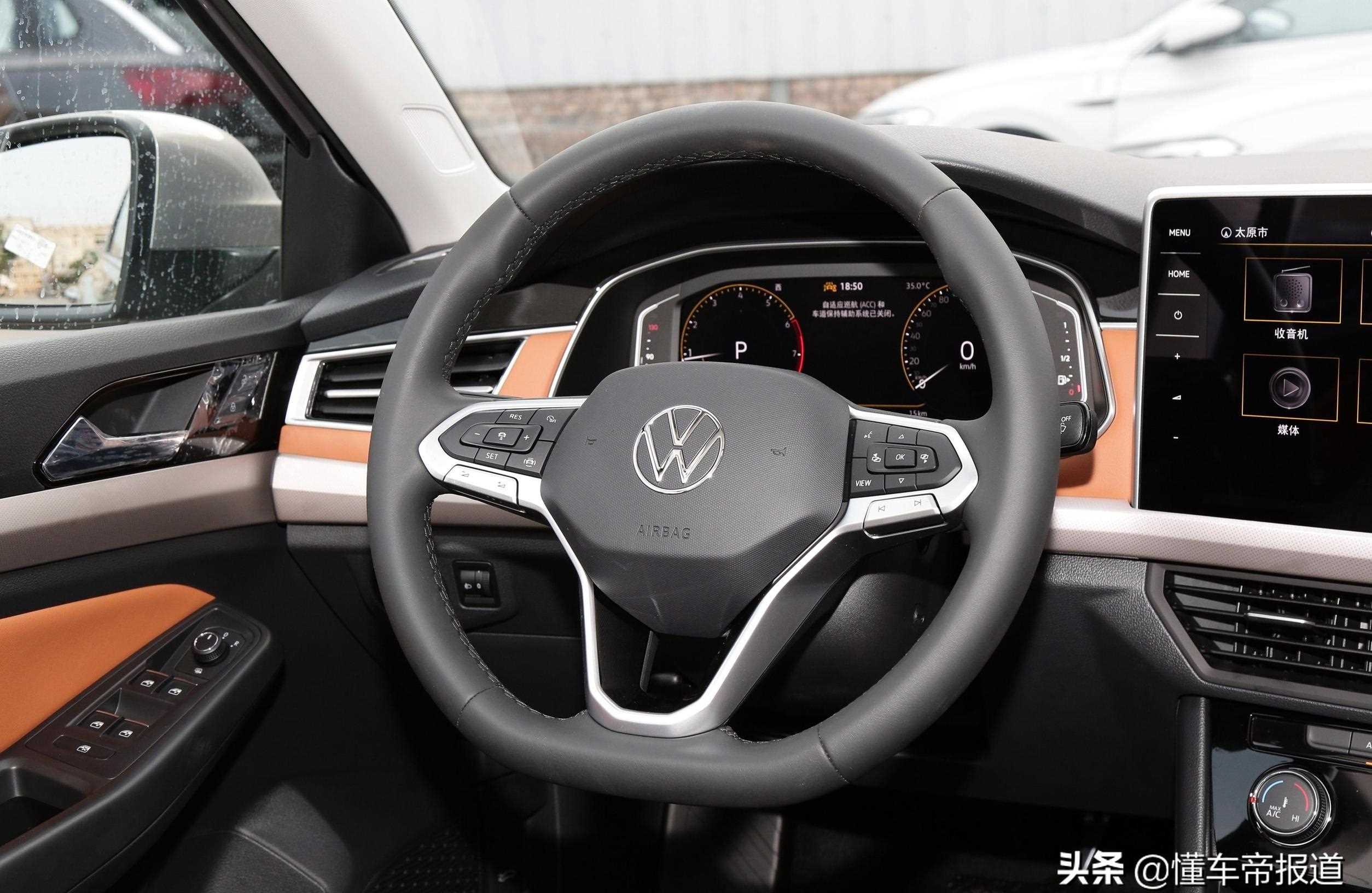 方向盤為全新大眾家族三輻式造型