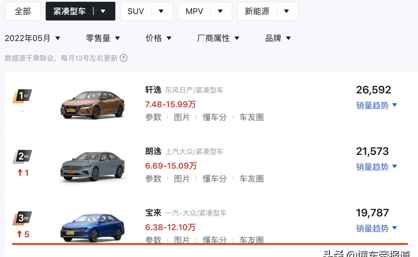 參考銷量來看,寶來5月銷量為19787輛,位列當月緊湊型車銷量榜第3位。在國內(nèi)汽車市場,緊湊型三廂轎車是家用車消費者的首選品類,該細分市場體量龐大,但競爭也相對激烈。隨著新款寶來的加入,在緊湊型家用車中您會選擇誰呢?歡迎在評論區(qū)共同交流。