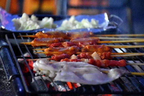 路邊攤位嘗燒烤,牛肉鹽均味不咸。