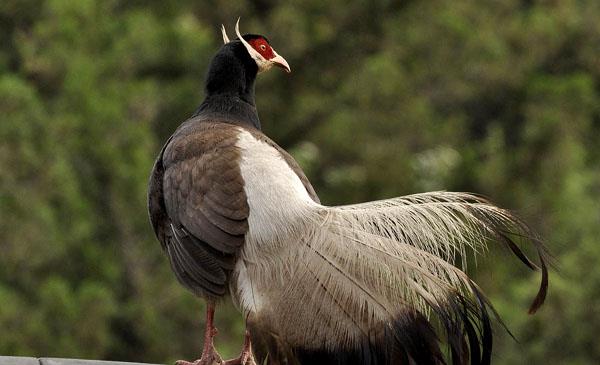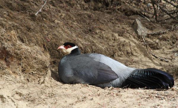 善奔走,飛行速度慢,通常不遠(yuǎn)飛。受驚時(shí)常往山上狂奔,至嶺脊處才振翅飛起,滑翔至山谷間。不象藍(lán)馬雞、褐馬雞那樣怯懦,有時(shí)接近村落也不畏懼。叫聲洪亮,鳴叫時(shí),昂首引頸,嘴幾乎直向上方,尾也往上翹,姿態(tài)雄俊。