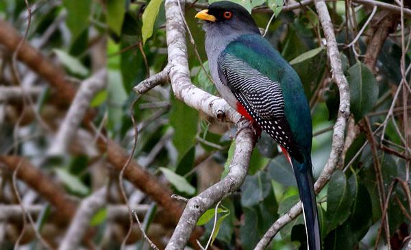 伊島咬鵑:別名伊斯帕尼奧拉咬鵑,為咬鵑目、咬鵑科、咬鵑屬鳥類,原產(chǎn)于南美洲多米尼加共和國(guó)、海地、伊斯帕尼奧拉島,棲息于500-3000m熱帶雨林,很少出現(xiàn)在低海拔地區(qū)。1817年命名,無(wú)亞種。分布的范圍很小,由于其生活區(qū)域森林退化,數(shù)量持續(xù)下降,屬近危物種。