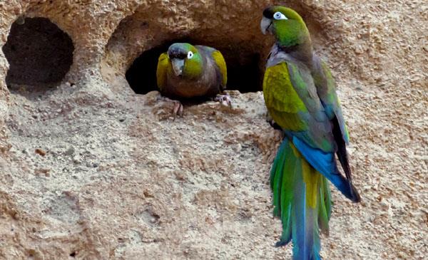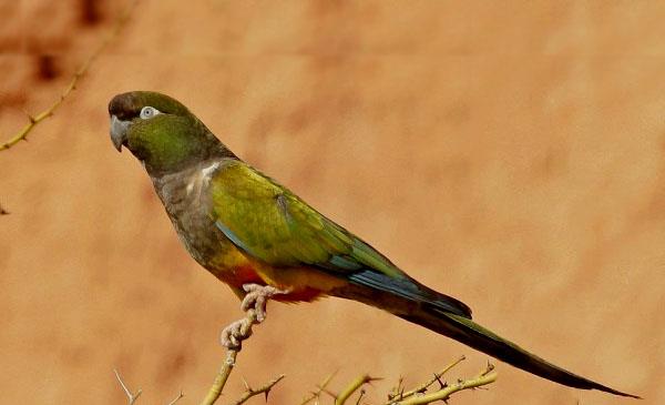 掘穴錐尾鸚鵡:別名掘穴鸚哥_巴塔哥尼亞錐尾鸚鵡,為鸚形目、鸚鵡科、錐尾鸚哥屬鳥類,原產(chǎn)于南美洲阿根廷、烏拉圭、智利、南美洲的南部等地,主要棲息于各種型態(tài)的開闊鄉(xiāng)村地區(qū),比較偏好靠近水源但刺叢生長的干燥地區(qū),以及水源附近仙人掌植物生長的干燥地區(qū)。1818年命名,共4個亞種。是季節(jié)性遷徙的鳥種,在寒冷的季節(jié)會往北飛,前往比較溫暖的氣候生活。