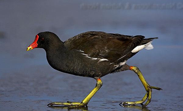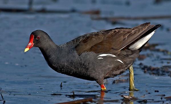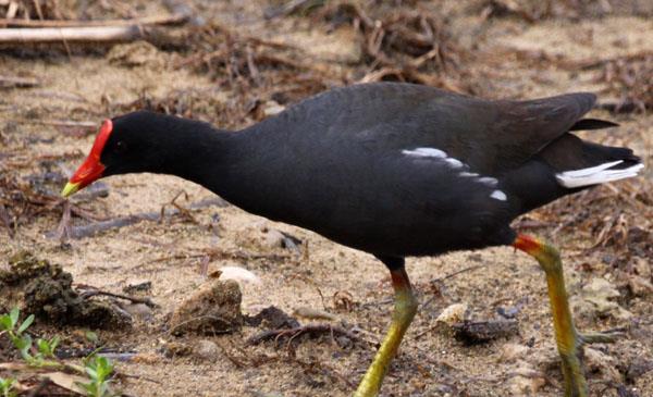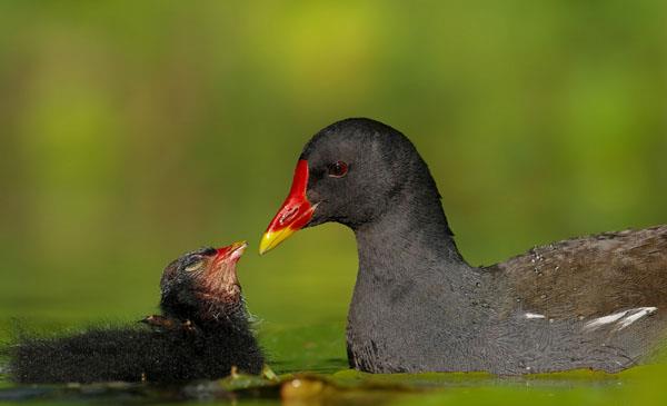 黑水雞:別名鷭_江雞_紅骨頂_紅冠水雞,為鶴形目、秧雞科、黑水雞屬鳥類,原產(chǎn)于歐亞大陸及非洲部分地區(qū)均有分布。是我國較為較常見留鳥和夏候鳥,我國新疆西部、華東、華南、西南、海南島、臺灣及西藏東南的大部地區(qū)均有分布。棲息于海拔400-1800m,富有蘆葦和水生挺水植物的淡水濕地、沼澤、湖泊、水庫、葦塘、水渠和水稻田中,也出現(xiàn)于林緣和路邊水渠與疏林中的湖泊沼澤地帶。1758年命名,共12個亞種。不耐寒,一般不在咸水中生活,喜歡有樹木或挺水植物遮蔽的水域,不喜歡很開闊的場所。