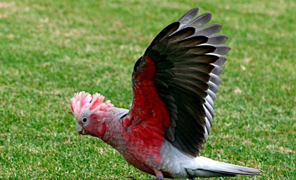 粉紅鳳頭鸚鵡:別名桃紅鸚鵡_玫瑰鳳頭鸚鵡_玫瑰葵花鸚鵡_粉紅胸鳳頭鸚鵡,為鸚形目、鳳頭鸚鵡科、鳳頭鸚鵡屬鳥類,原產(chǎn)于大洋洲澳大利亞的東部、中部以及北部的一些沿海島嶼,曾經(jīng)引進(jìn)塔斯馬尼亞島。喜棲息于森林地帶、草地、半干旱的地區(qū),也包括牧區(qū)、城鎮(zhèn)、公園和庭院。夏季多見于林地,主要在涼爽、陰涼的河流附近。冬天則生活在比較干旱的林地在海拔比較溫和的地區(qū)。茂密的森林比較少見。1817年命名,共3個(gè)亞種。