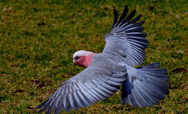 頭體長35-37cm,重270-350g。鳥體為暗粉紅色,前額、頭冠以及頸部為帶點(diǎn)白色的淺粉紅,翅膀以及尾巴為灰色。下腹部、肛門附近、二級(jí)覆羽、臀部以及尾巴上方的內(nèi)側(cè)羽毛均為淺灰白色,三級(jí)飛羽中灰色和暗灰色,尾部的頂端是比較暗的淺灰色,尾巴的底面是均勻的棕色,喙角彩色,鳥喙為臘白色。叫聲尖銳粗啞,時(shí)常和大葵花鳳頭鸚鵡一起混群活動(dòng)。
