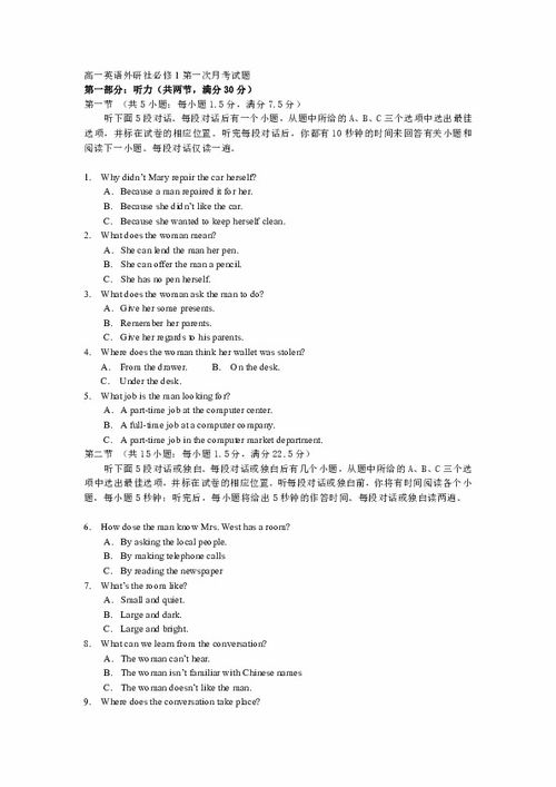 a lot of happy. happy→ happinessOne possible version:My new school is called Xinhua High School.It's very beautiful and peaceful, because it is far from the center of the cityand near a big park. On stepping into the school, you can see a tall teachingbuilding, where we study every day. Behind it, there is a big playground. Wehave P.E. class on the playground and after class we often play sports on ittoo. There is a library besides the playground where we can read a lot ofbooks. What's more, there is also a dining hall and two dorm buildings in ourschool. I love my school very much.部分解析閱讀理解:A篇 (旅游)本文是應(yīng)用文。作者主要講述了自己的旅游經(jīng)歷。
