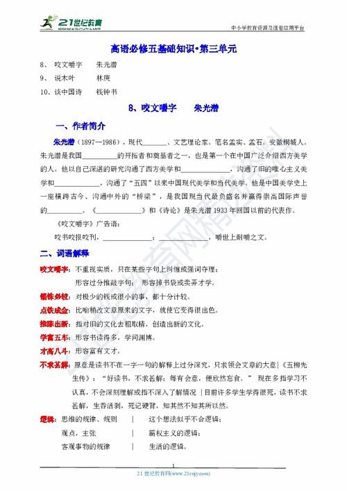語文必修五基礎(chǔ)知識(shí)梳理林教頭風(fēng)雪山神廟赍發(fā)( ) 賞賚( ) 盤纏( )投奔( )救濟(jì)( )濟(jì)濟(jì)一堂( ) 迤邐( )逶迤( )喝彩( )親眷( )玷辱( ) 沾光 拈花惹草( ) 髭須( ) 發(fā)髻( )訾議( )饒恕驍勇翹楚( )恁地( )租賃( )渾家 模樣( ) 模棱兩可( )酒饌( )不尷尬 不省得( )連累( )妨礙提防( )吃飯防噎( ),走路防跌( )解腕尖刀( ) 剜卻( ) 豌豆( )蜿蜒( )婉約( )小街夾巷( )巷道( )洗漱( )看管( )絮煩朔風(fēng)( )追溯( ) 塑造 橫槊賦詩 搠倒( )倉廒( )鏖戰(zhàn)( )鑰匙( )碗碟諜戰(zhàn)通牒 喋血沽酒震撼火炭反拽搖曳 碎瓊亂玉庇佑( )懷揣( ) 籬笆天理昭然尋思( ) 浸滅( )入侵( )掇將( )輟學(xué)點(diǎn)綴啜泣( ) 央浼( ) 分娩( )冠冕肐察( ) 竅門( )裝在套子里的人即使( )暖和( )削鉛筆( )殼子( )軀殼( )驚嚇( )恐嚇恫嚇威嚇( )膽怯( )憎惡( )充分( )俱樂部規(guī)矩( )悶悶不樂( )悶熱( ) 祈禱慎重( )純粹淬火( )萃?。?) 薈萃猝不及防( )妥當(dāng)( )唉聲嘆氣他倆( )陶冶( )轄制( )葷菜( )插科打諢( )渾家璦琿( )琿春( )戰(zhàn)戰(zhàn)兢兢噩夢沒精打采孤僻( )癖好( ) 譬如( ) 撮合( ) 一撮胡須( )慫恿游說( ) 筋疲力盡精疲力盡興高采烈平心靜氣 哆嗦( ) 一樁心事譏誚( )逍遙銷聲匿跡宵衣旰食( )喉嚨消遣漲紅( )讒言 聲明 申明 安然無恙( ) 怔?。?) 摔斷( )滑稽 稽首( )結(jié)束( ) 不速之客( )邊城接壤( )攘除穰穰( )安輯保守開門揖盜( )修葺( )似乎( )似的( )興奮( )蘸酒( )茶峒( )干燥急躁洞穴( )翹起翹楚( )翹首以望( )吶喊木訥( )方枘圓鑿( )擂鼓( )打擂( )戊戌戍守戎馬生涯戒驕戒躁束縛( )溥儀( )戶口簿( ) 當(dāng)真( )儺送( ) 閉氣氽( ) 牛犢買櫝還珠案牘棕櫚( )粽子( )蚱蜢( )舴艋( )圍繞( )打擾( )人民( )抿嘴( )占據(jù)占卜( )答應(yīng)( )答案( )蹤跡淙淙( )囑咐 候車室吊腳樓鞶鼓( )湖泊( )停泊( ) 粗鄙( )踹一腳( )掙揣( )湍急( )祥瑞( )碧溪岨( )撐船悖時(shí)( )欺侮( )放肆( )伙計(jì)( )埋怨( )埋單( )喧闐( )鎮(zhèn)筸( )赤裸( )腳踝( )鏤空( )洞硝磺炭鋼砂一千槌吼嘯儼然( )角隅( )嘍羅=嘍啰沅水( )拮據(jù)( )眺望 瞭望( )檢點(diǎn)怏怏( )纜繩 一攬子 呼吁( )長吁短嘆( )強(qiáng)橫( )攏岸( )笑瞇瞇 嗤的笑了 睥睨( )嗩吶( )糍粑( )嗚嗚喇喇( )掂著( )分量( ) 堡子( )睡著( )第三單元基礎(chǔ)知識(shí)梳理 8 咬文嚼字裨益( )裨將( )婢女( )稗官野史( )俾眾周知( )咬文嚼字( )倒嚼( )咀嚼( )潛移默化( ) 嬋娟 貂蟬 殫精竭慮( )肆無忌憚( )蟬聯(lián)倒涎( )鋌而走險(xiǎn)( )憎惡( )深惡痛絕( )適宜( )友誼( )邏輯( )緝私( )作揖( )舟楫( ) 錙銖必較( )涵義=含義凝練=凝煉斟酌( )勘誤( )戡亂( )箭鏃( )花團(tuán)錦簇( )斬釘截鐵漂亮( )漂染( )漂白粉( ) 漂泊=飄泊 因緣姻緣氤氳( )窨井( )魯莽貿(mào)然冷寂寂寞孤零零( ) 胸襟( )拘禮( )拘泥( )剝啄( )岑寂( )汗涔涔( )平添攪擾比較( )骨子里( )花骨朵( )琢磨( ) 琢磨( ) 捉摸( )暈厥( )暈外霞光( )暈車( )蘊(yùn)藉慰藉枕藉( )狼藉( )書籍支離破碎烹飪( )泡茶( )泡桐( )月亮泡( ) 清沁肺腑( )泌陽( ) 秘魯( )流弊 凋敝引誘( )良莠不齊( )錦心繡口( )俗濫( )濫竽充數(shù)( )監(jiān)生( )倚靠( )辭藻=詞藻鉛字 沿襲( )付梓( )莘莘學(xué)子( )尺牘( )長篇累牘舐犢情深買櫝還珠窮兵黷武( )上乘( )千乘之國( )欣賞( )頎長( )精煉=精練 唯(惟)陳言之務(wù)去9 說“木葉”裊裊( )鳧水( )梟雄( ) 木葉( )葉韻( ) 吟唱( )大放厥詞( )浦江( )哺育( ) 年甫二十( )輔車相依( ) 果脯( )胸脯( )褒貶裹足不前食不果腹鐘愛鐘靈毓秀( ) 后皇嘉樹,橘徠服兮( ):橘啊,你這天地間的佳樹,生下來就適應(yīng)當(dāng)?shù)氐乃痢?/p>